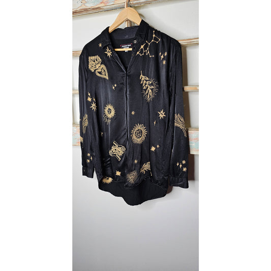 Johnny Was Workshop Black Button Up W/ Gold Embroidery High/low size XS