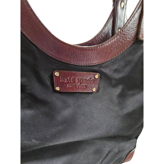 Kate Spade New York Black Nylon Shoulder Bag with Brown Leather Accents