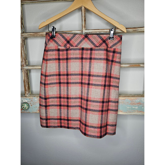 L.L. Bean lined Wool Blend Plaid Favorite Fit Skirt size 8 petite