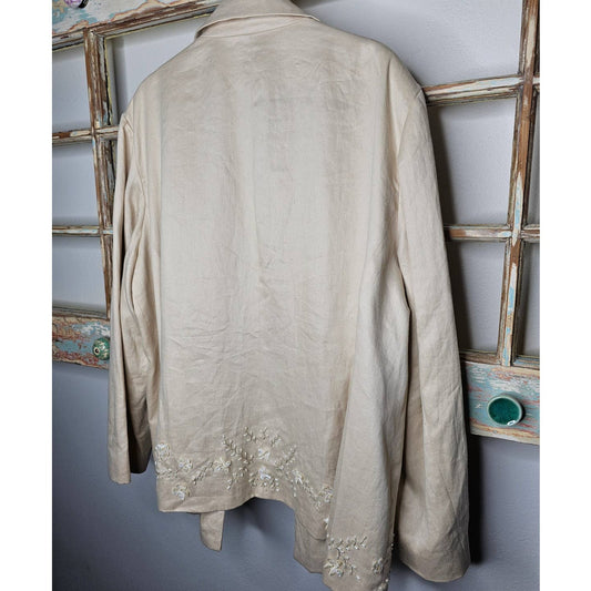 Lafayette 148 New York Cream Linen Blazer with embellishment size 24