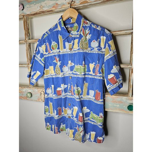 Kahali Hawaiian Shirt Tropical Drinks Button Up Short-Sleeve Size Large