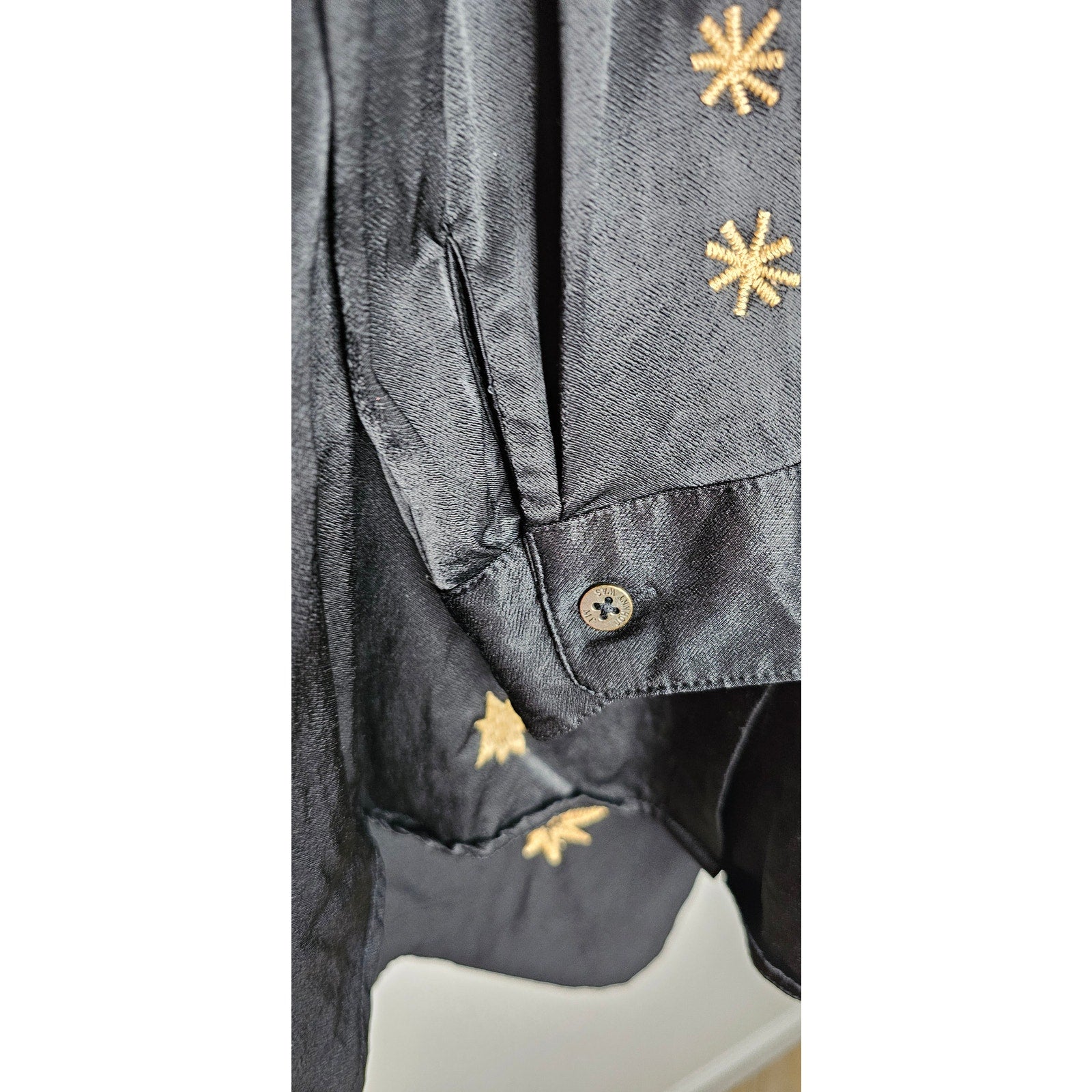Johnny Was Workshop Black Button Up W/ Gold Embroidery High/low size XS