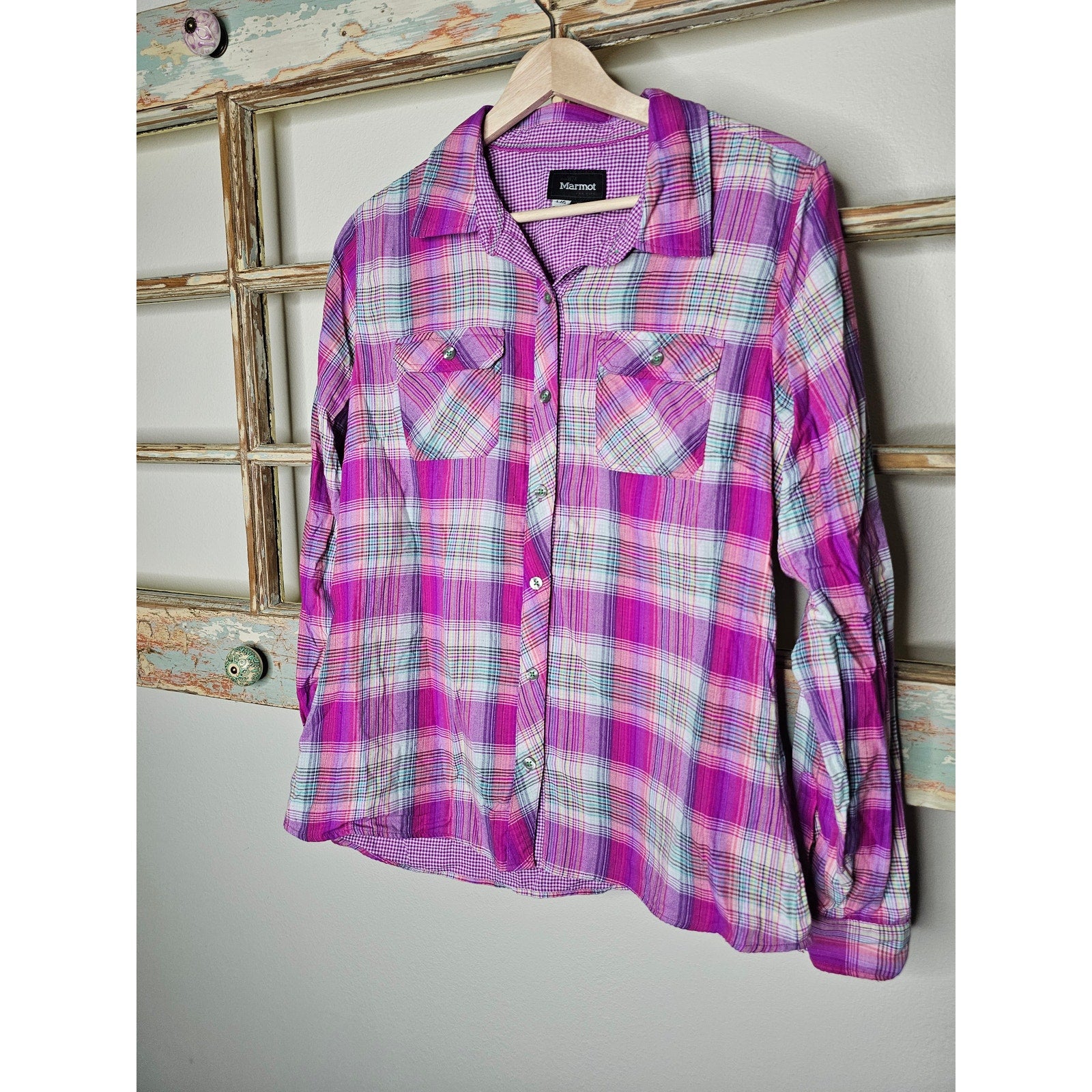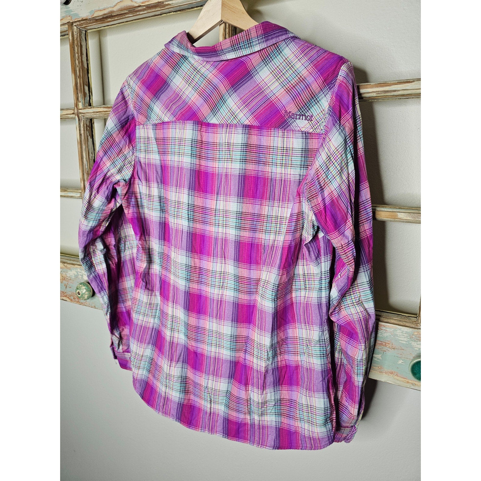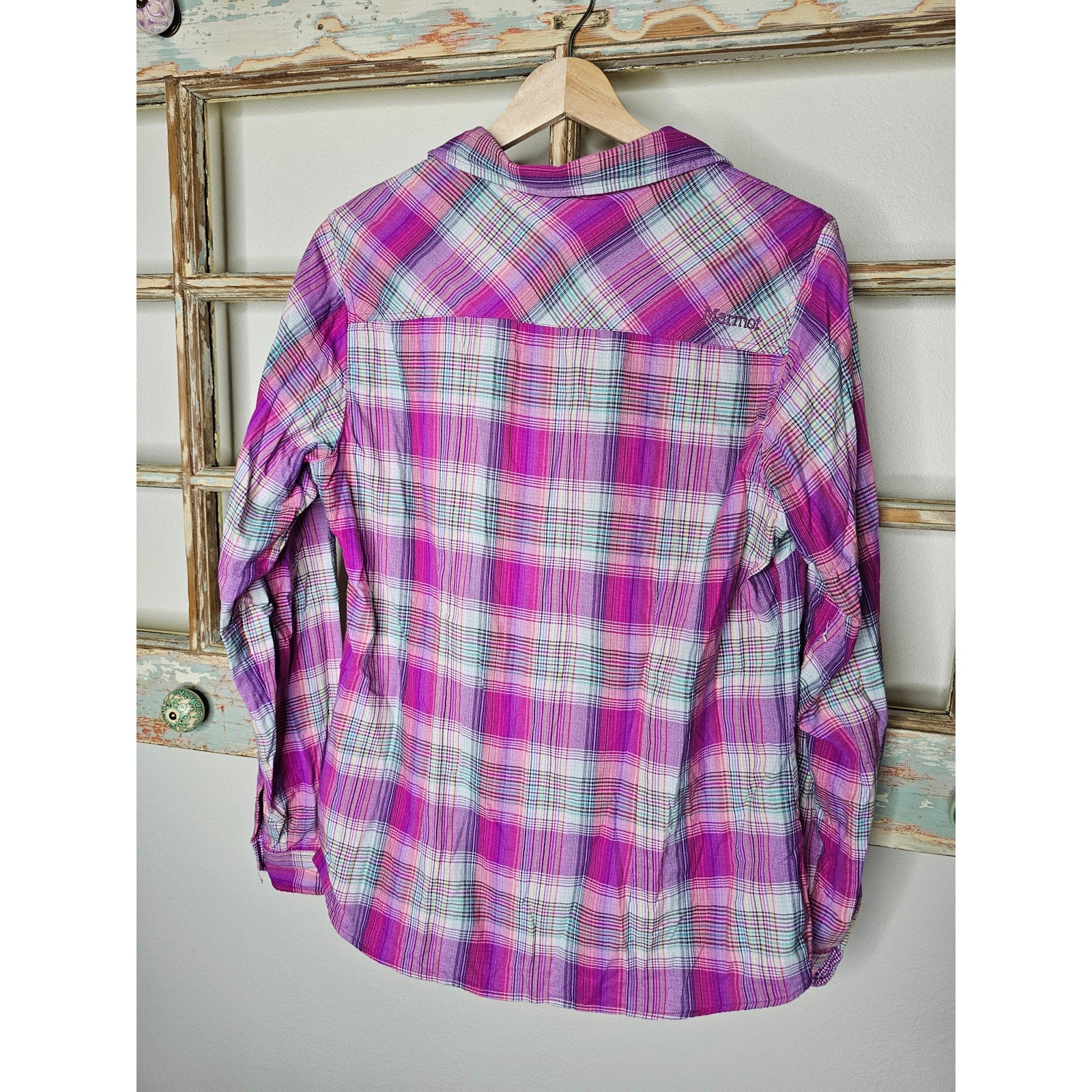 Marmot Magenta Plaid Button Up Long Sleeve Top Ladies size Large