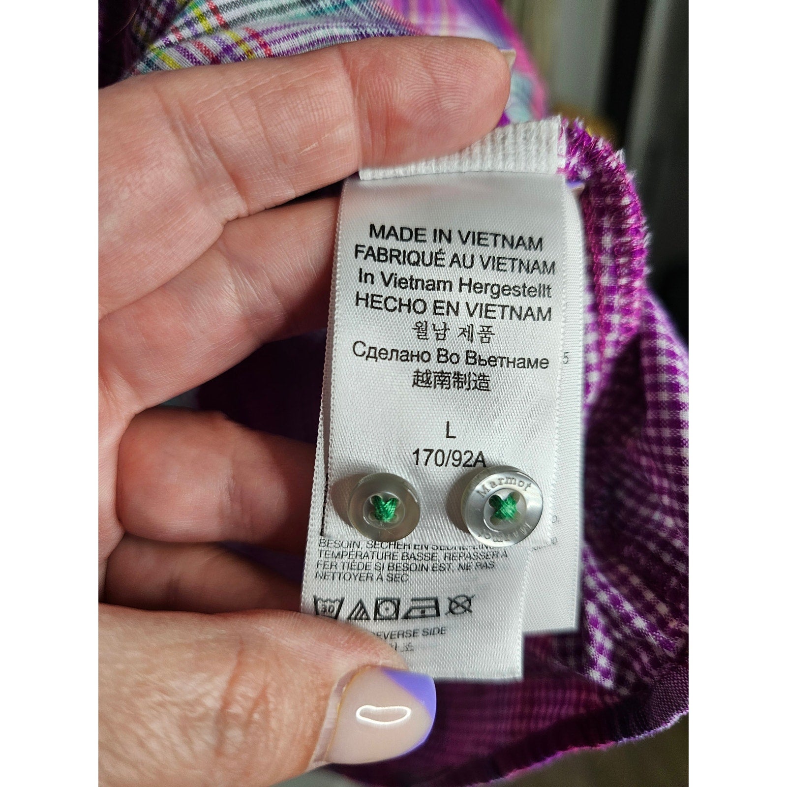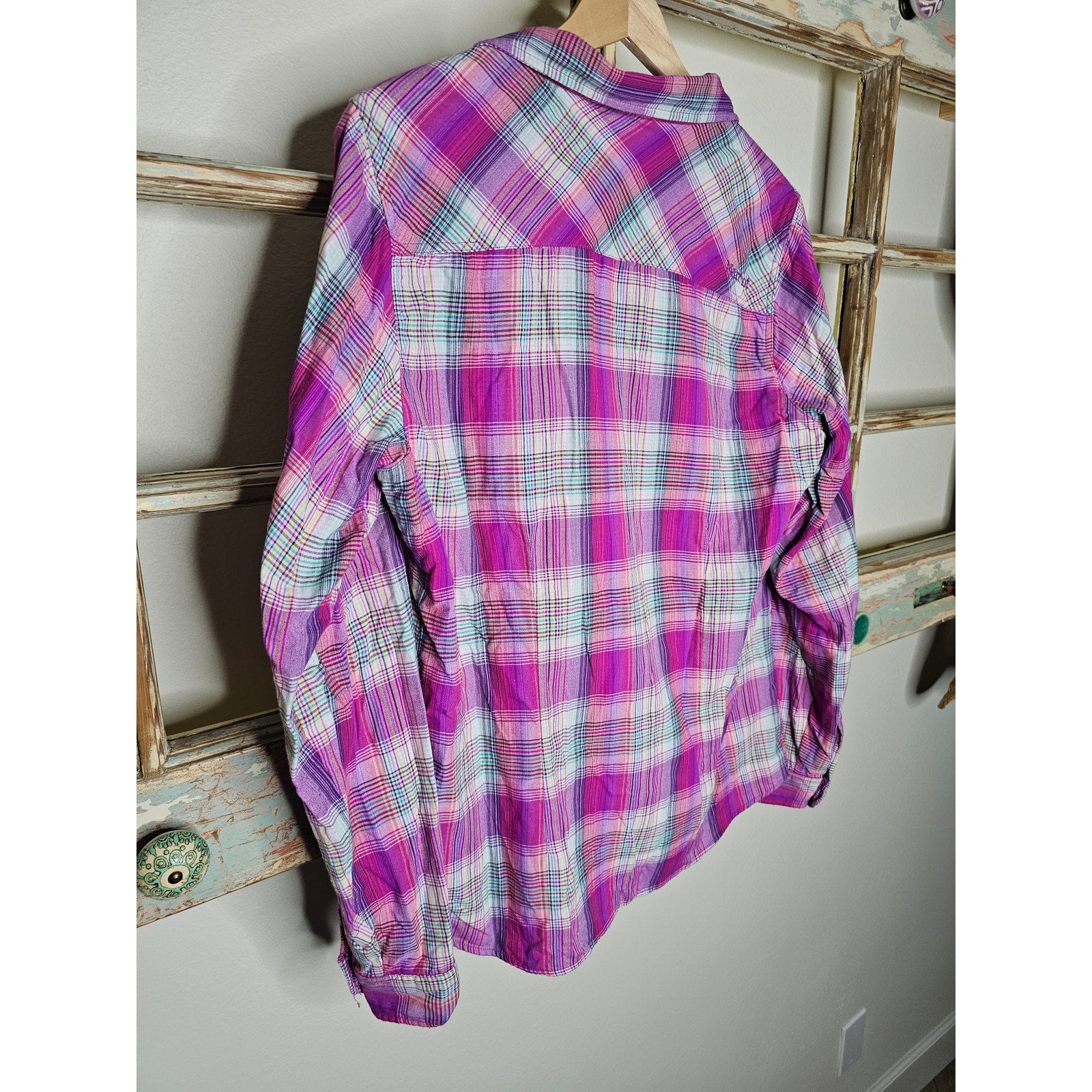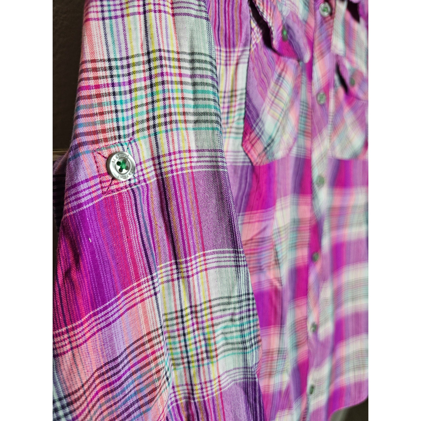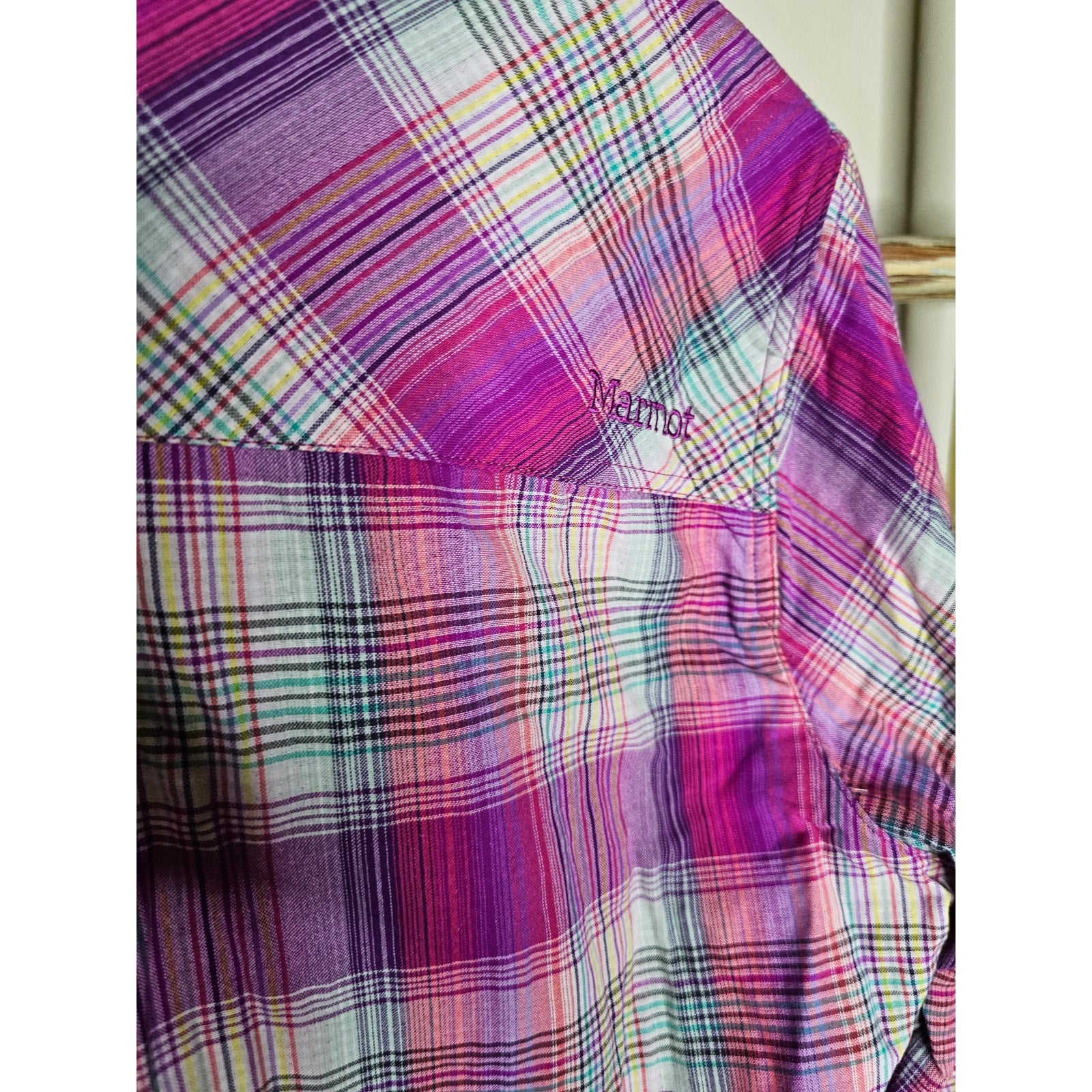 Marmot Magenta Plaid Button Up Long Sleeve Top Ladies size Large