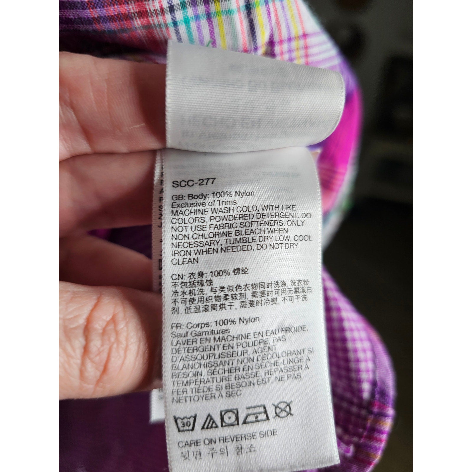 Marmot magenta plaid button up long sleeve ladies size large top. This top has a checkered magenta/white lining. Button front chest pockets for your goodies with buttons at cuffs. The sleeves can also be buttoned up for warmer days. This top is made of nylon and measures 20" pit to pit and 26.5" in length. The colors are vibrant with no signs of wear. It is in pristine condition.