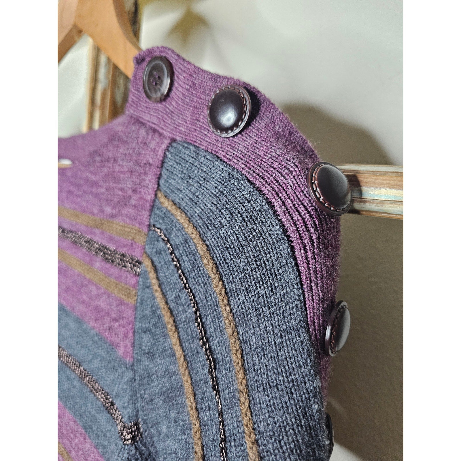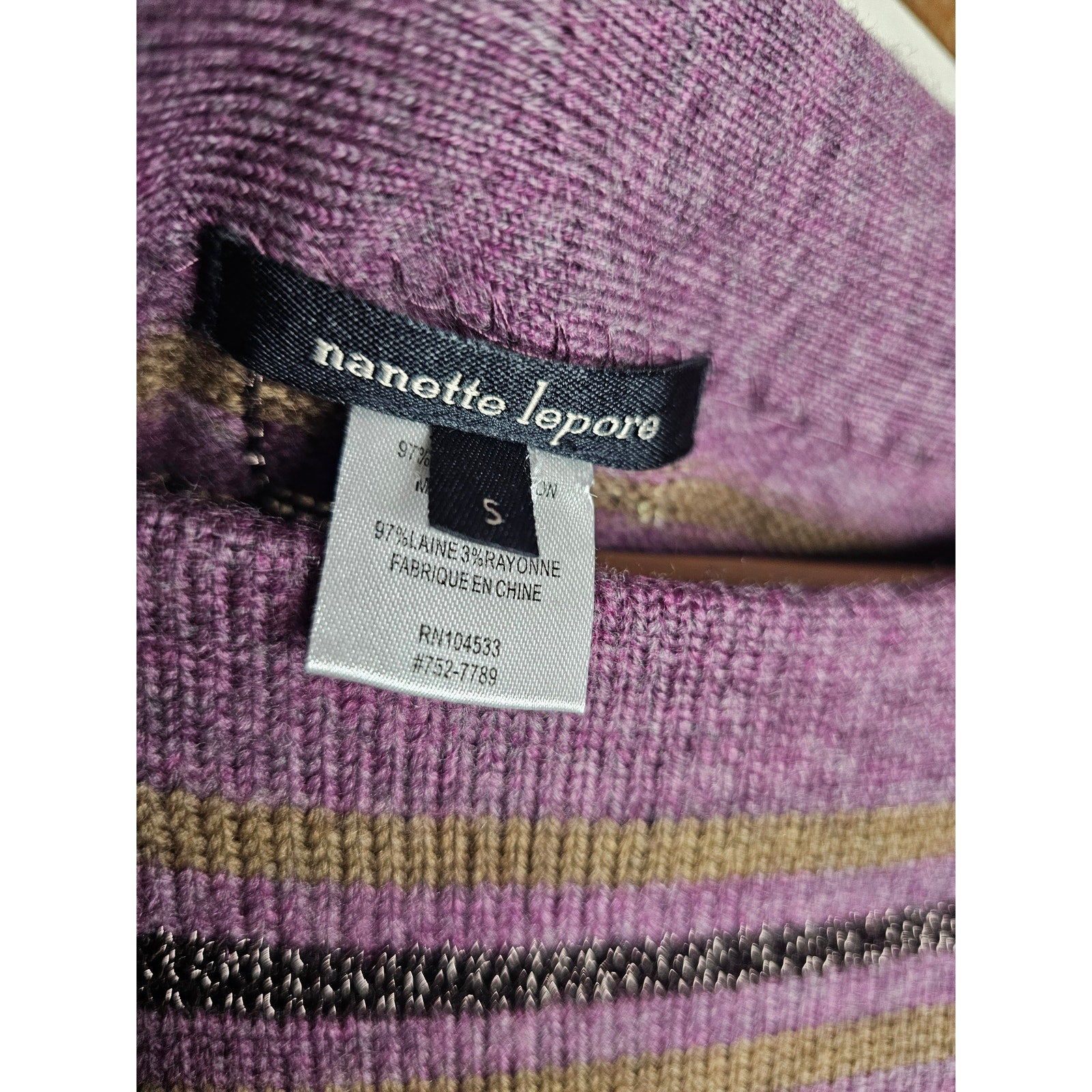 Nanette Lepore wool sweater dress with bell sleeves and fringe ladies size small. Boat neckline and buttons down the left arm. It measures 15.5" pit to pit , 34" in length and 24.5" sleeve length. This dress is preowned pristine condition.