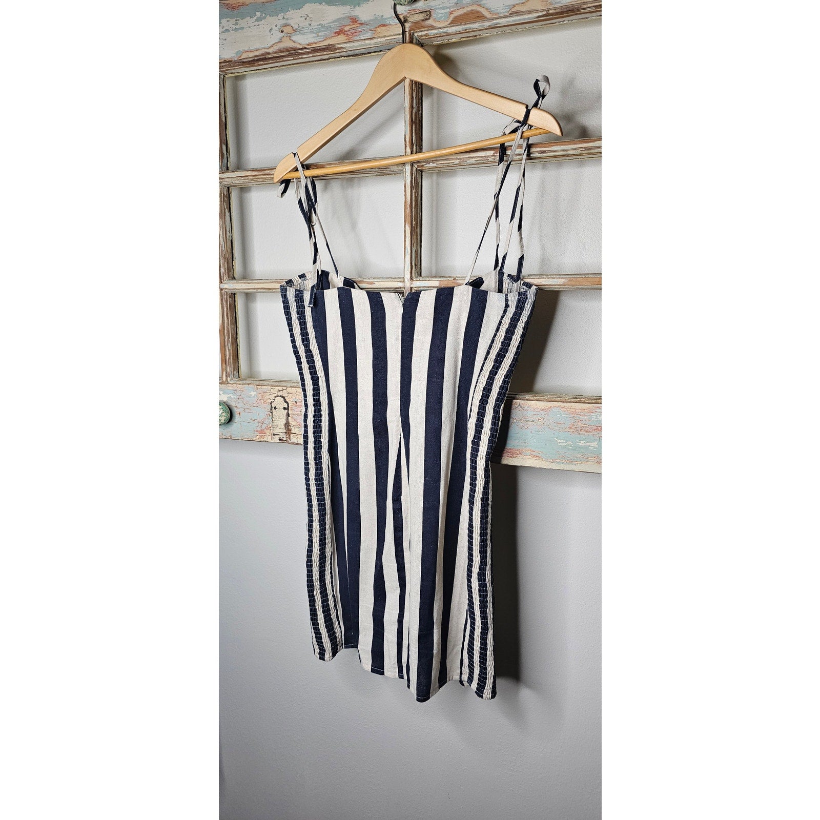 NWOT Astr The Label Linen & Viscose bodycon dress ladies size large. This dress is sporty and a super cute pairing with sneakers or sandals. It features tie shoulder straps and smocking on sides with a back zipper. It measures 18" pit to pit and 33" in length and does have stretch thanks to smocking.